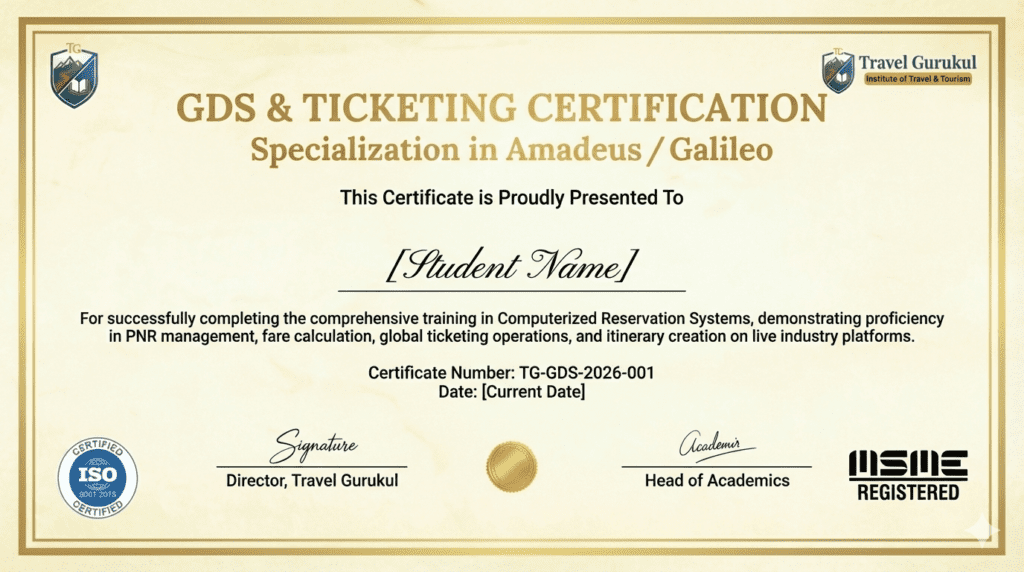 Get Certified by Travel Gurukul Upon successful completion of the course, you will be awarded the “Certification in Computerized Reservation Systems (GDS)”